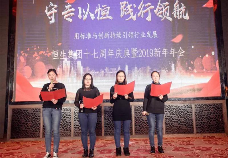 2018年是拼搏的一年,是輝煌的一年,2019將是不平凡的一年,是實現飛躍的一年,我們信心滿懷,我們深信,在董事長汪良美先生和恒生優秀團隊的帶領下,全體恒生人將篤定發展之心、堅定發展之志,用熱忱與堅韌、用真情與汗水、用激情與夢想,去書寫新的篇章!
