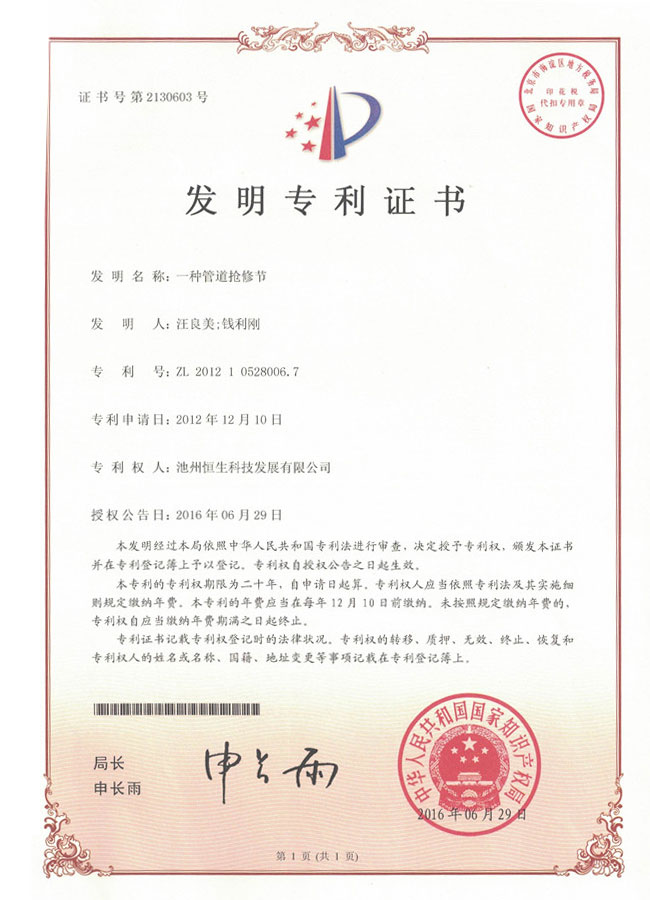 發(fā)明專利證書